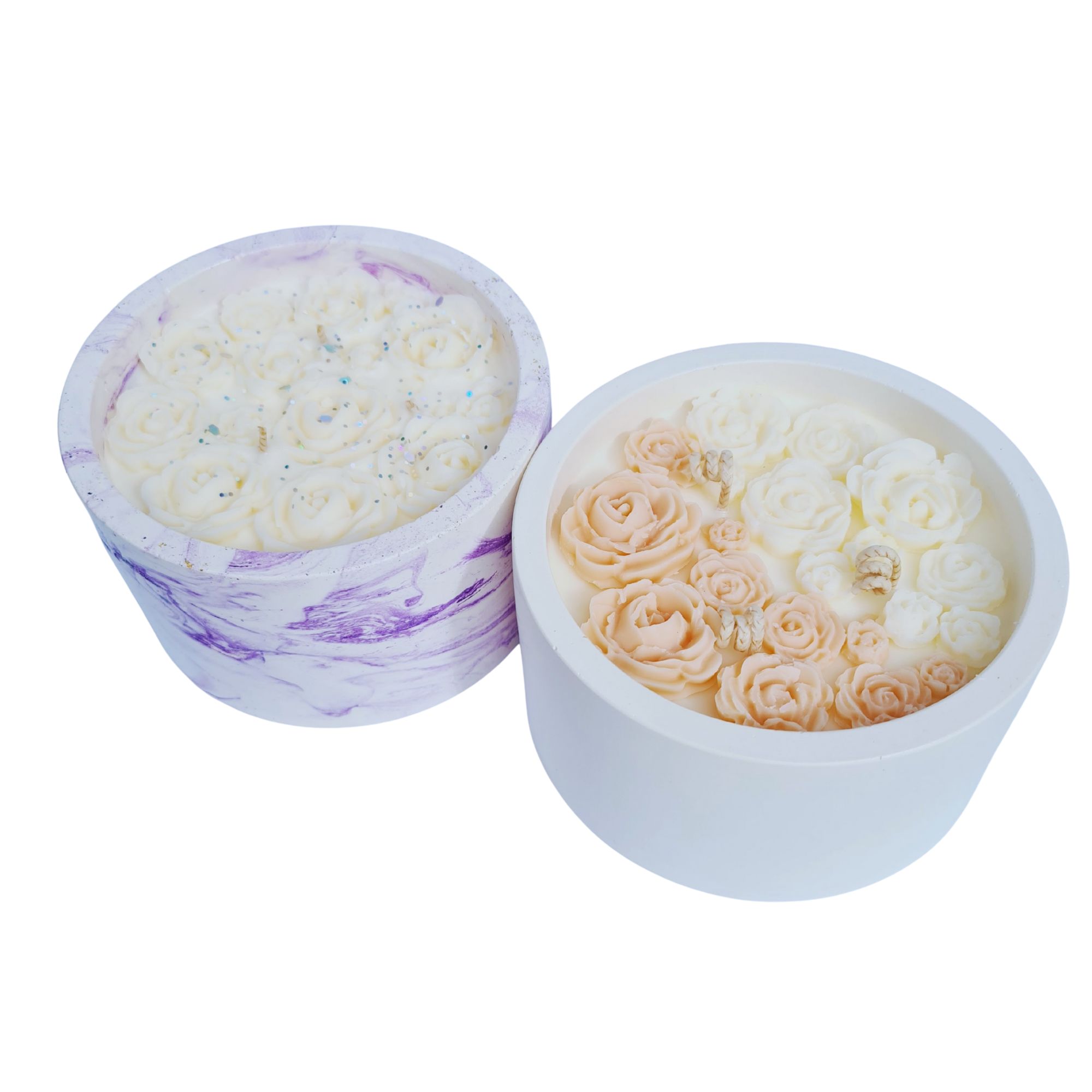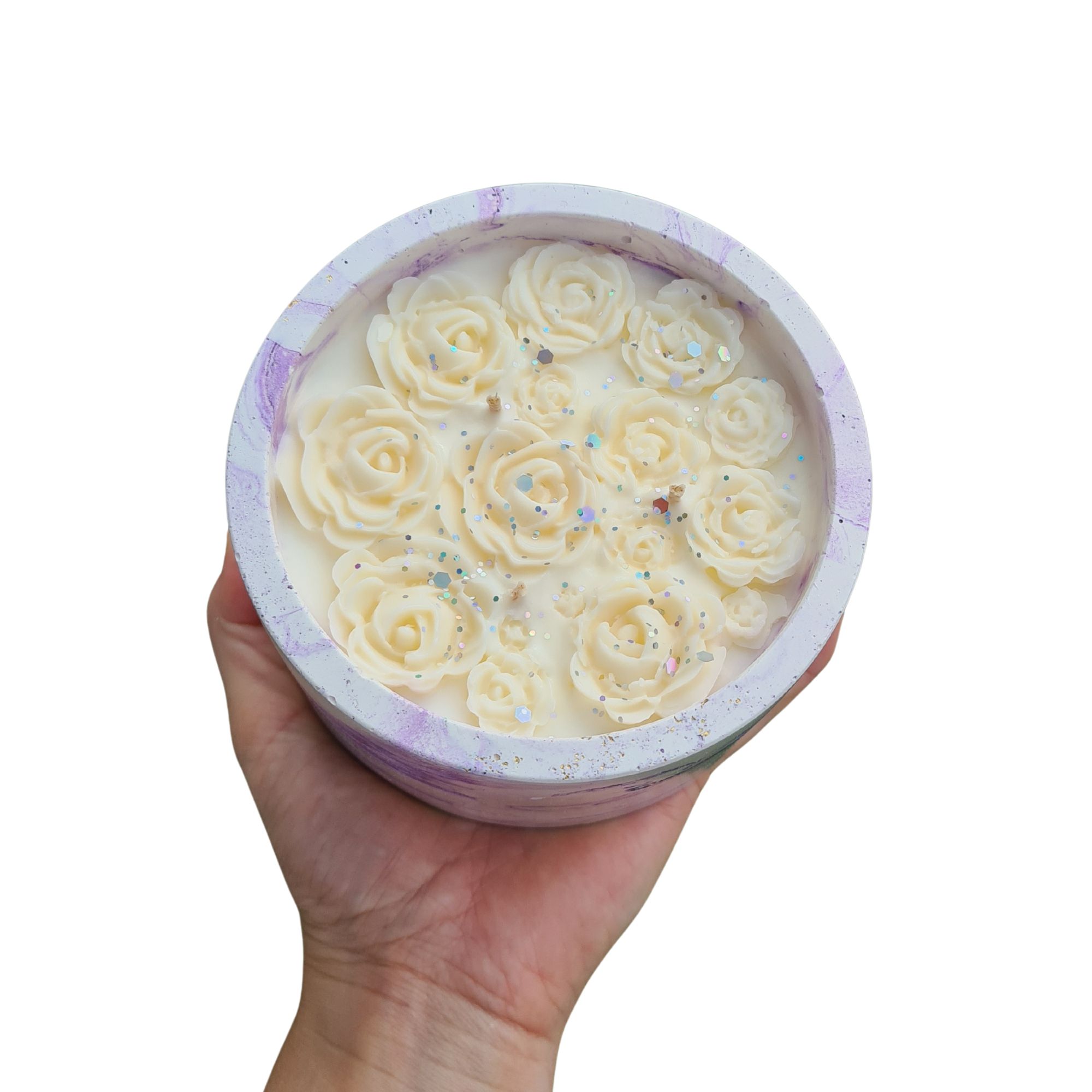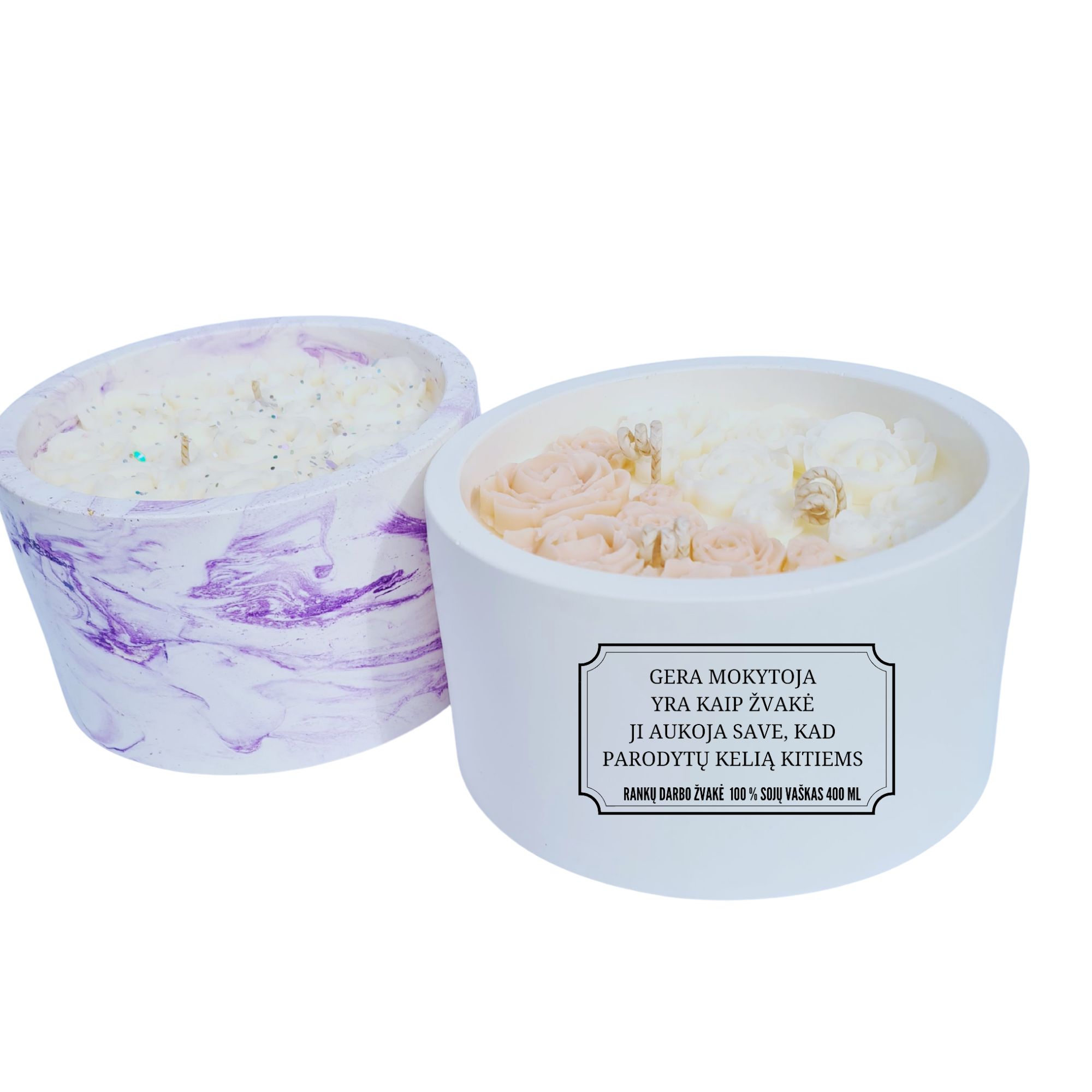 Sojų vaško žvakė, viršuje puošta rožytėmis