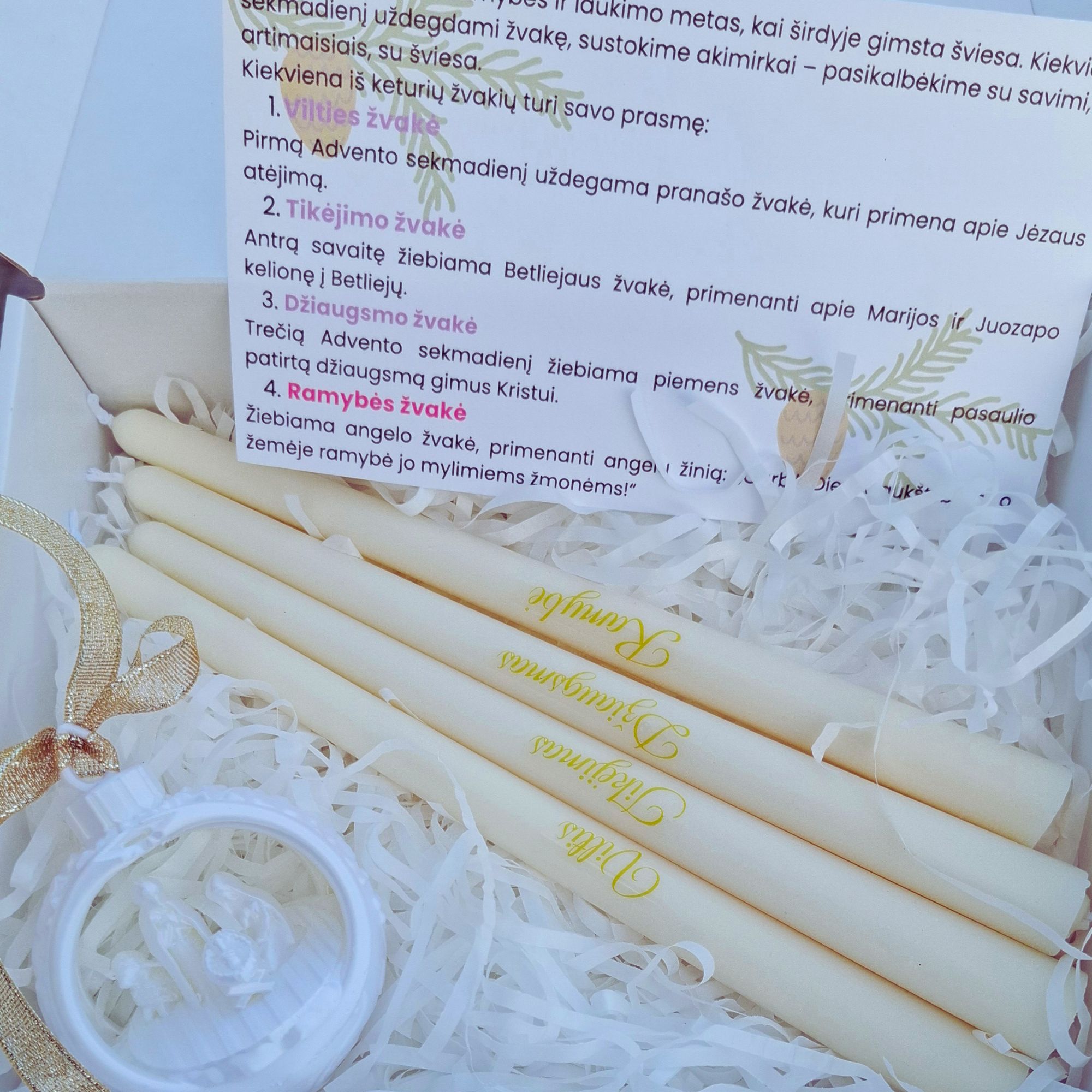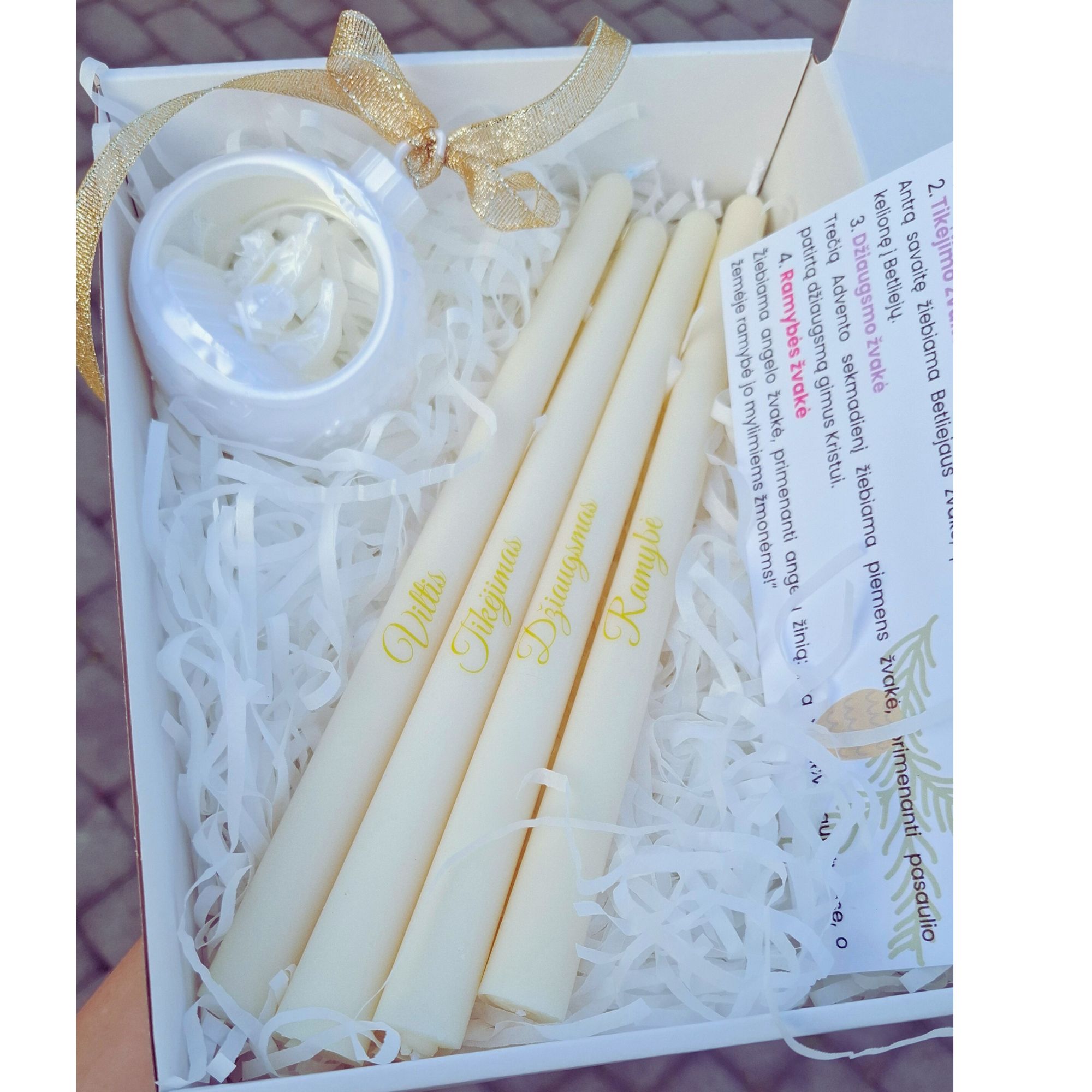 Advento žvakės baltos+dovana, bičių vaško