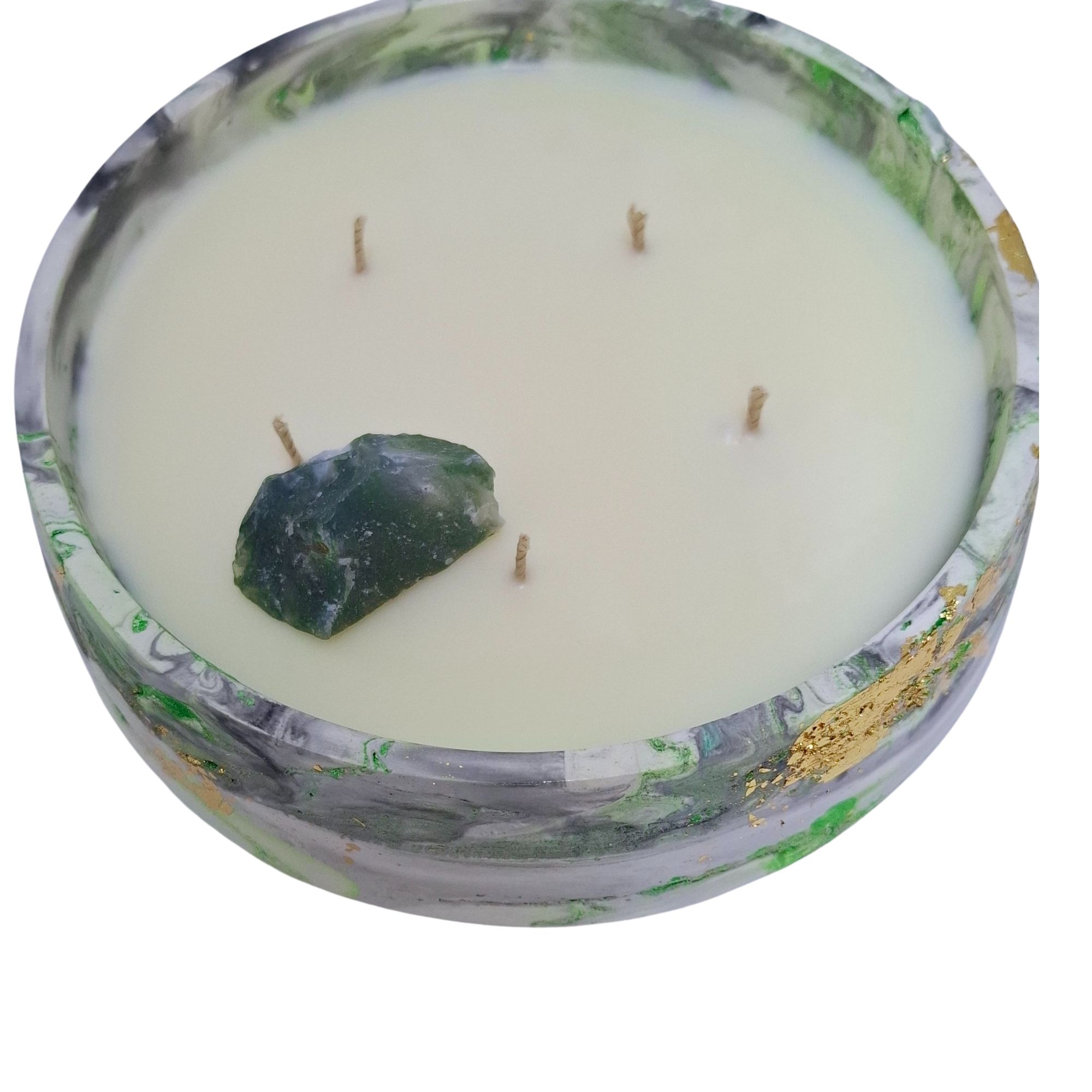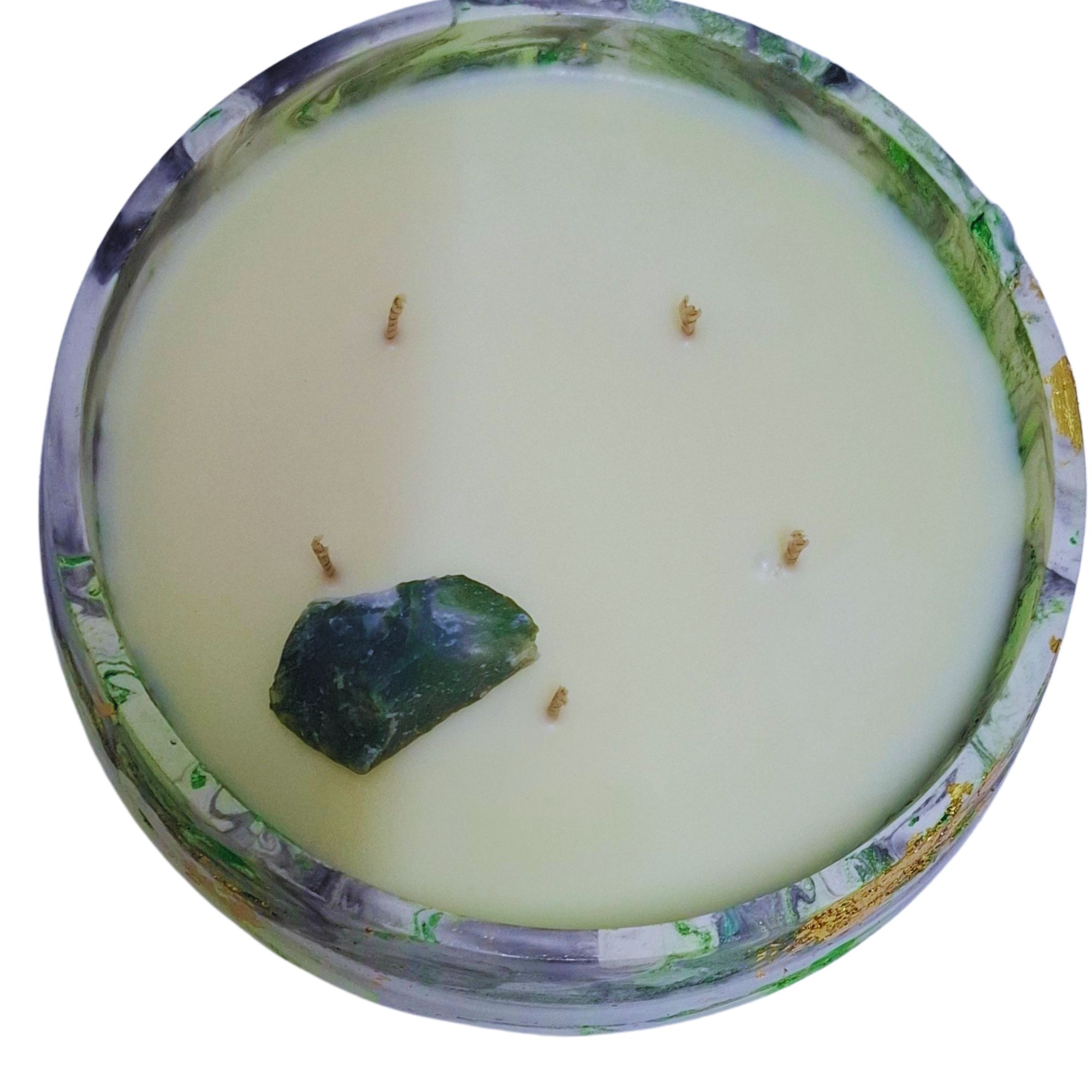 Ši žvakė išlieta rankomis iš 100 % natūralaus sojų vaško, puošta neapdirbtu samanų agatu, kurio unikalios struktūros primena samanų pievas po lietaus.