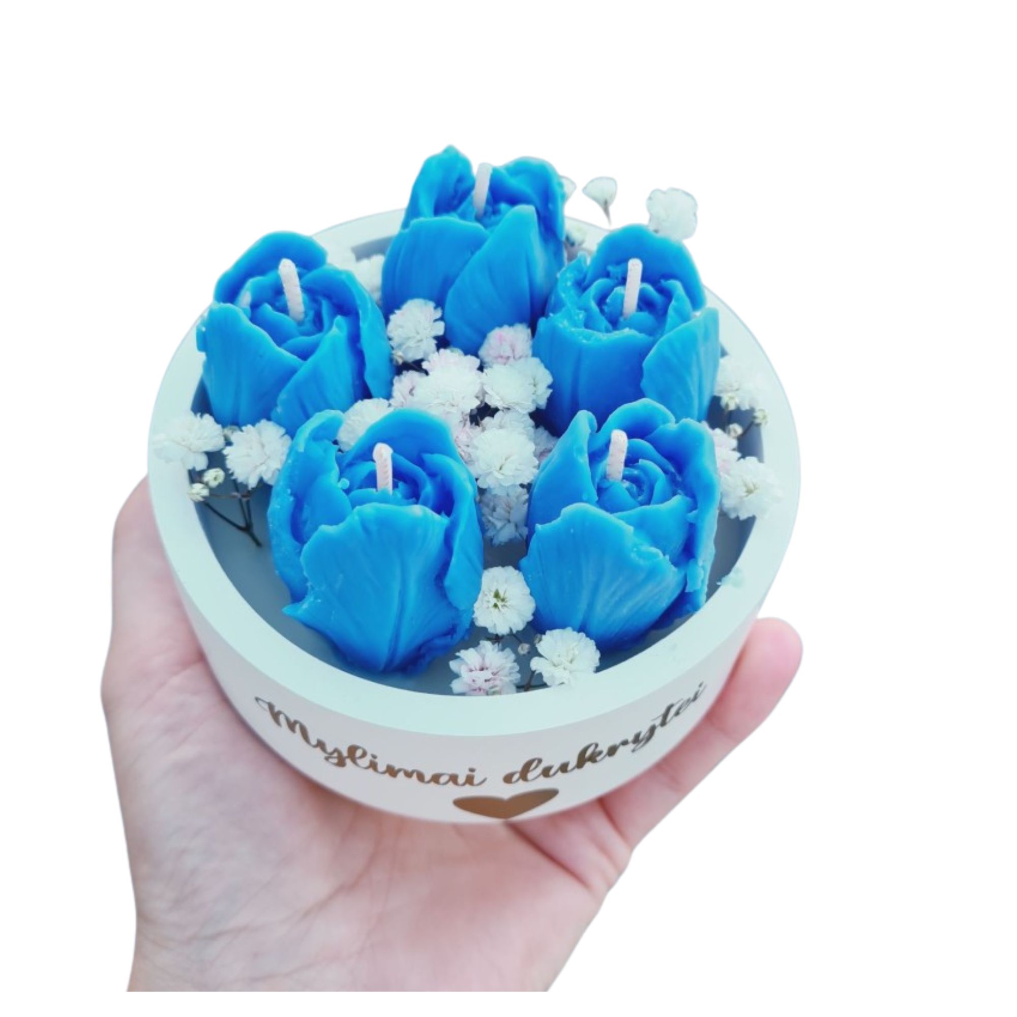 Dėmesio! Sausas gėles prieš uždegant žvakė reikia išimti.