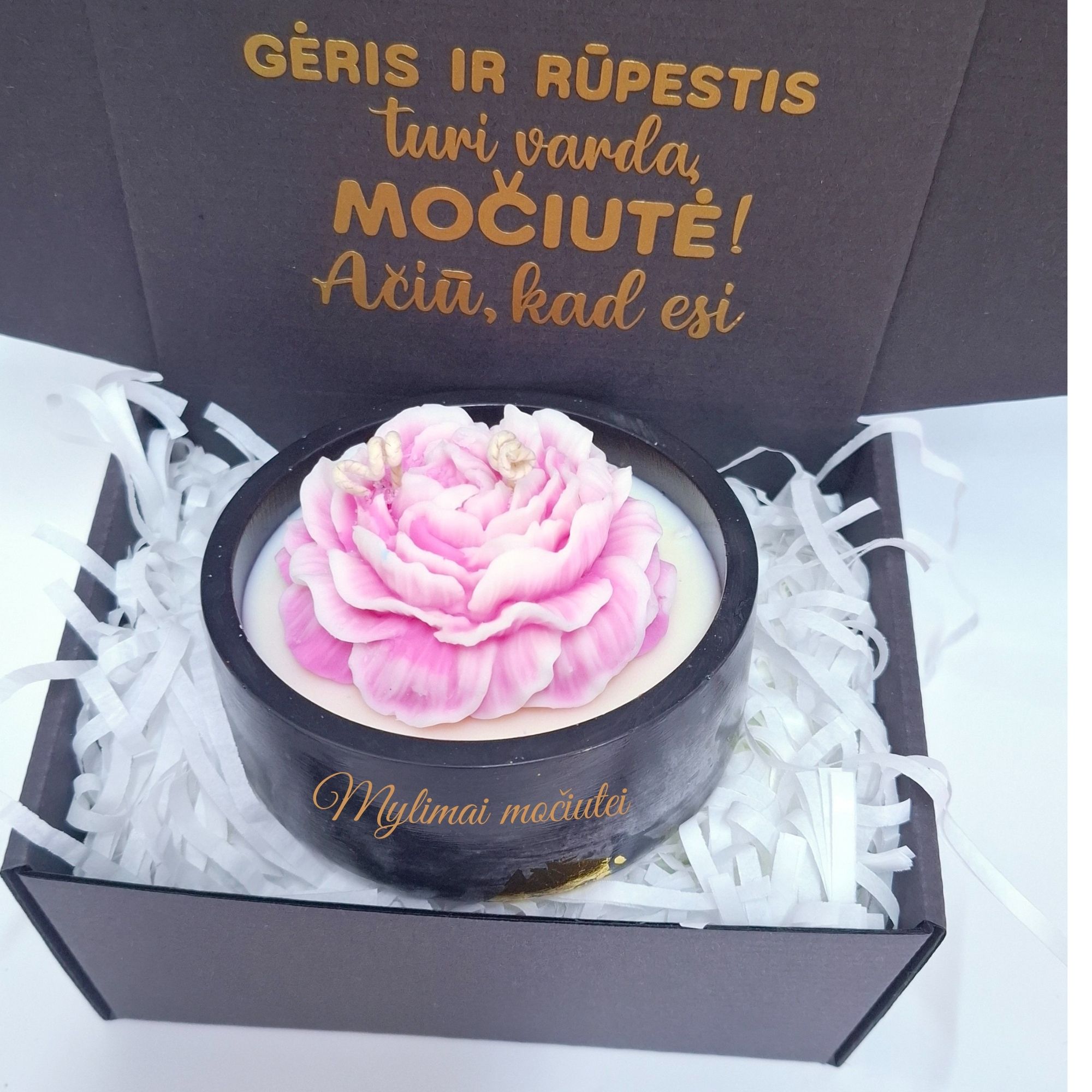 Įpakuota stilingoje dėžutėje su užrašu „Ačiū, kad esi“, ši žvakė yra tobula dovana močiutei