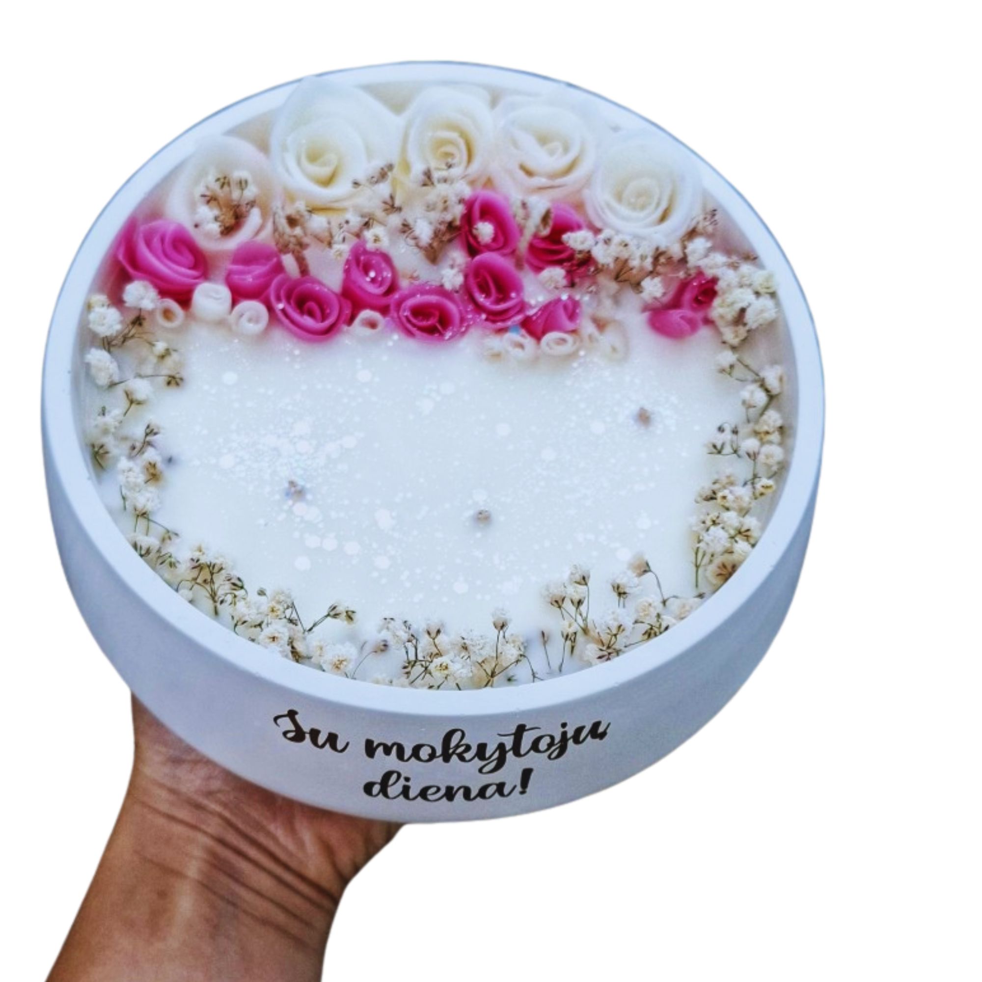 Įspūdingo dydžio rankų darbo žvakė mokytojai, XXL su sojų vašku, aromatiniais aliejais ir galimybe įrašyti personalizuotą tekstą. Supakuota baltoje dėžutėje, tinka dovanoti iškart.