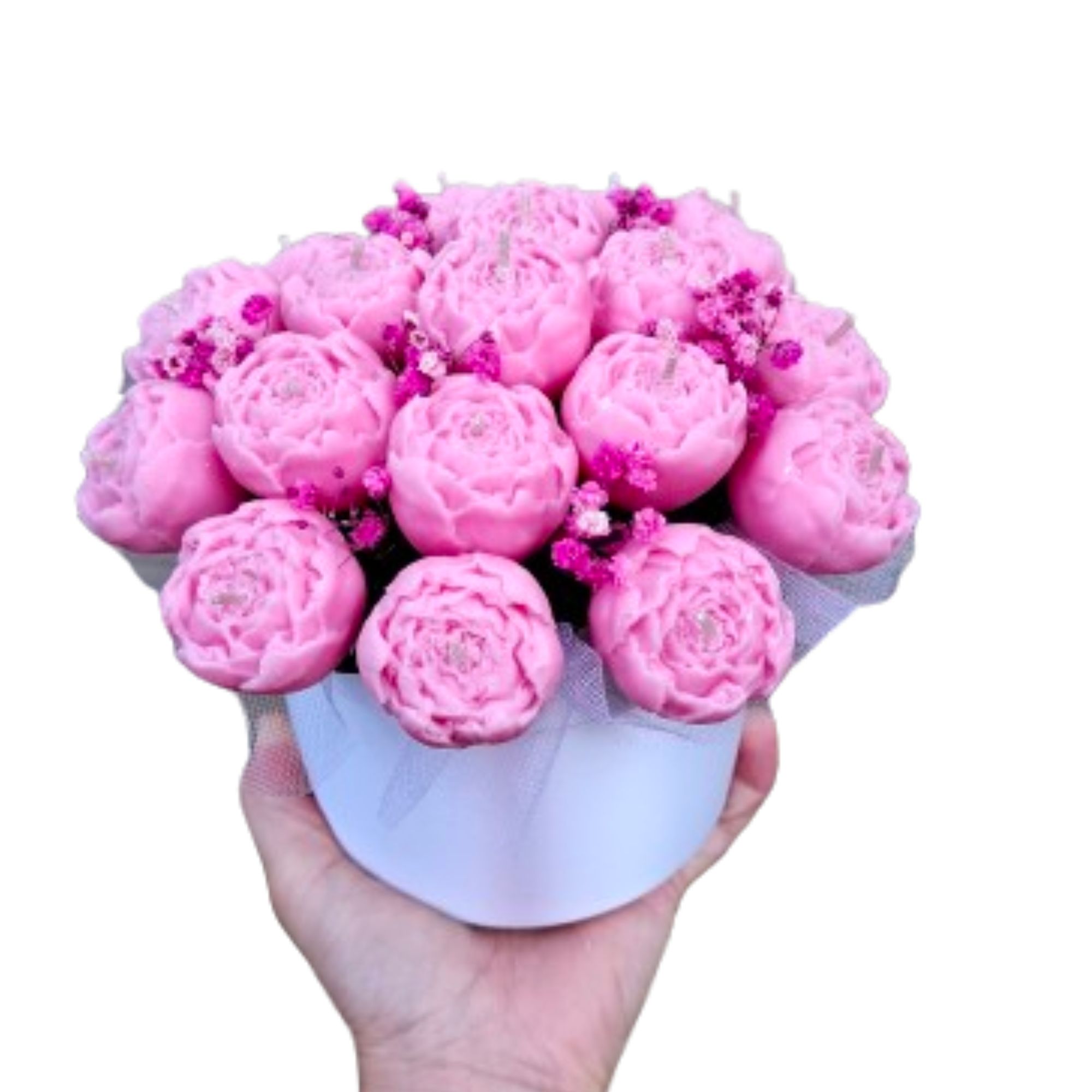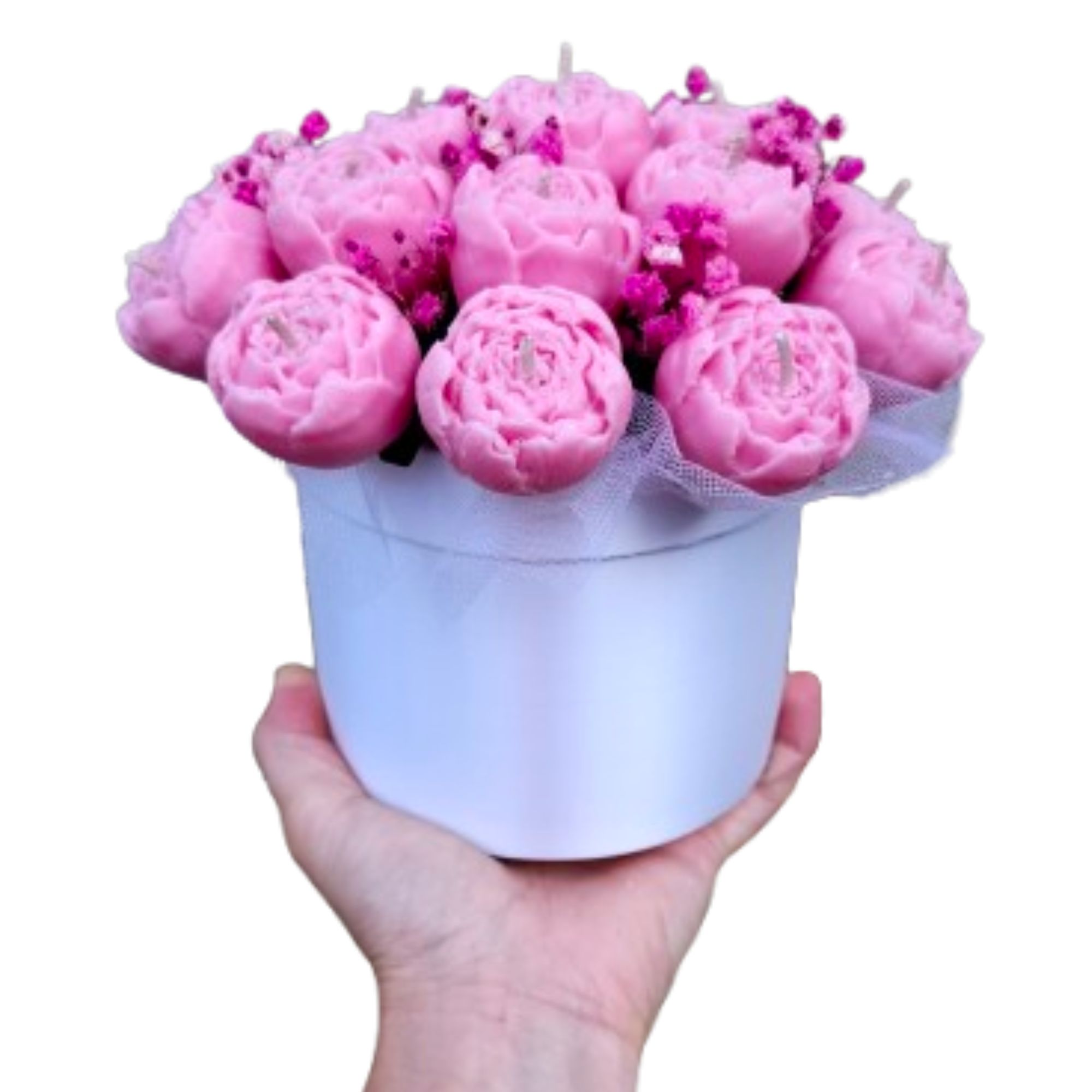 Dėžutėje 18 vnt kvapnių žvakučių bijūnų