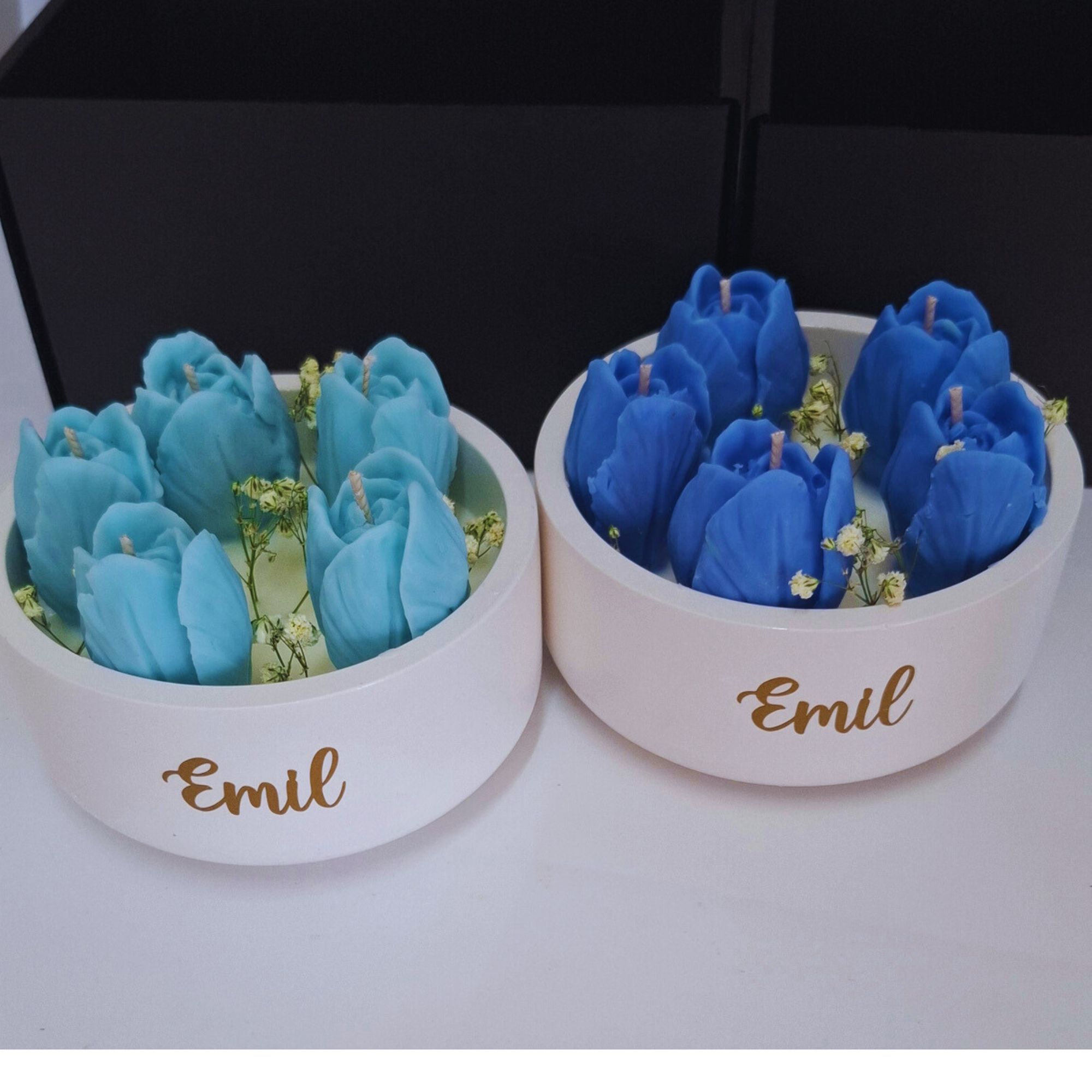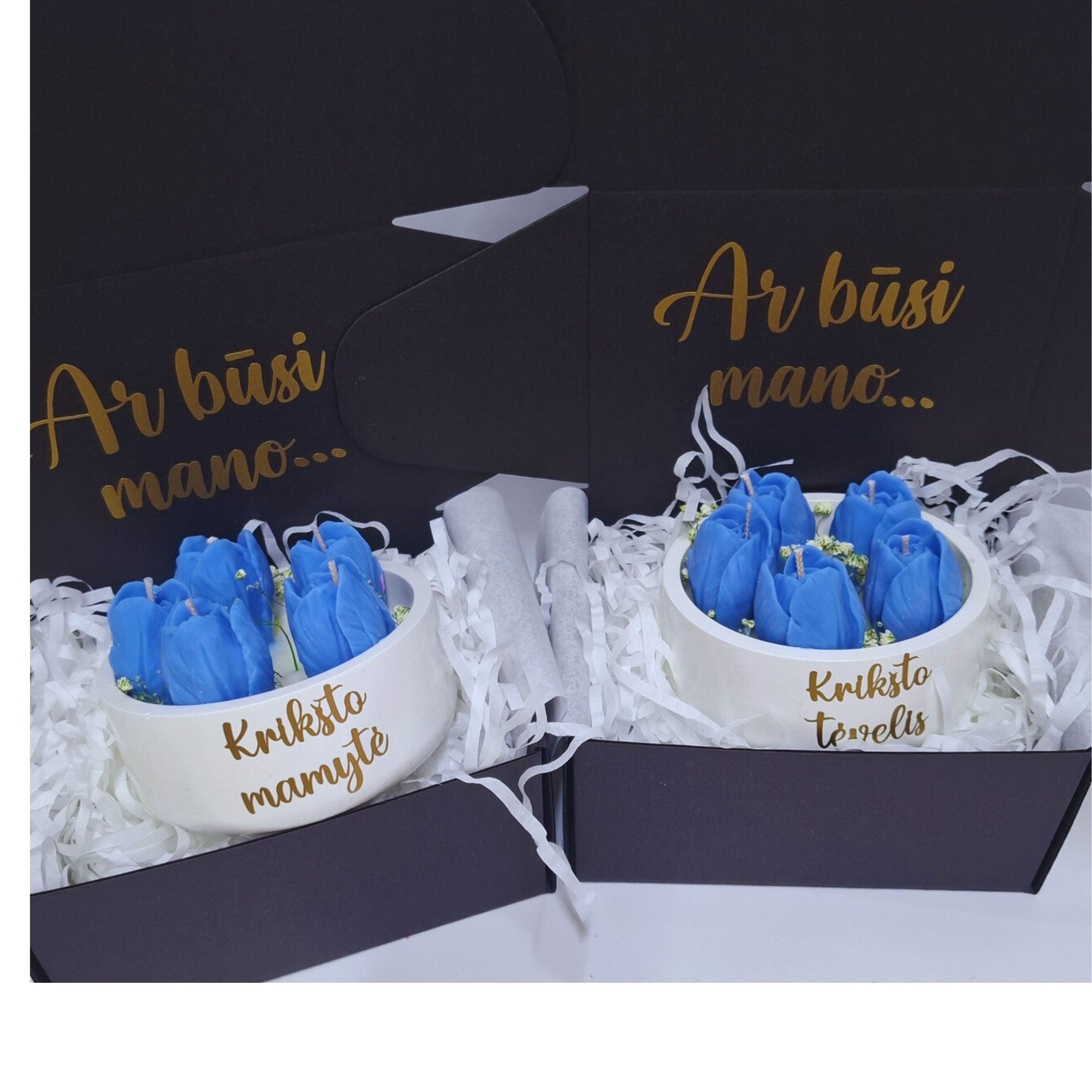 Rinkinyje: - rankų darbo žvakė Tulpės su pasirinktu užrašu