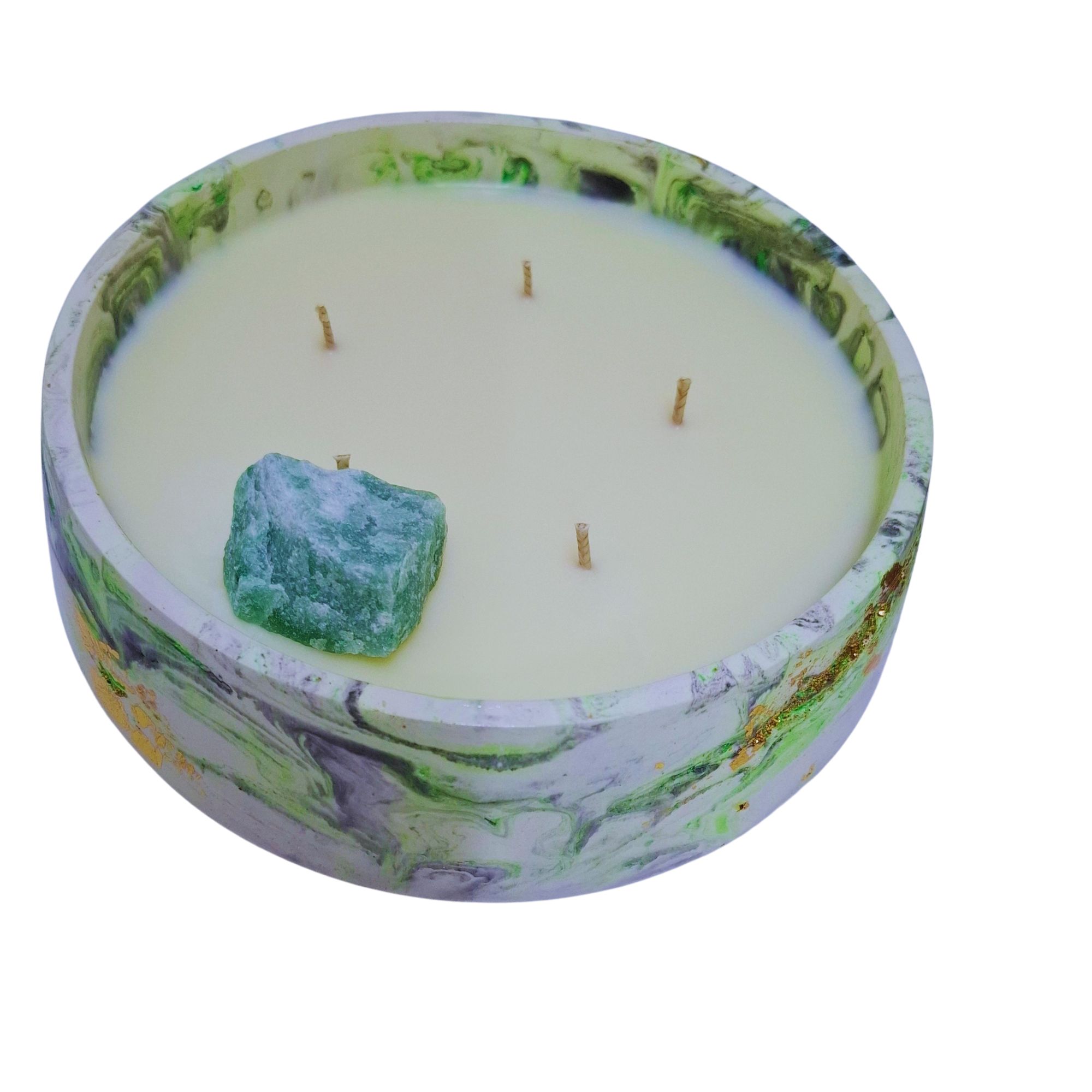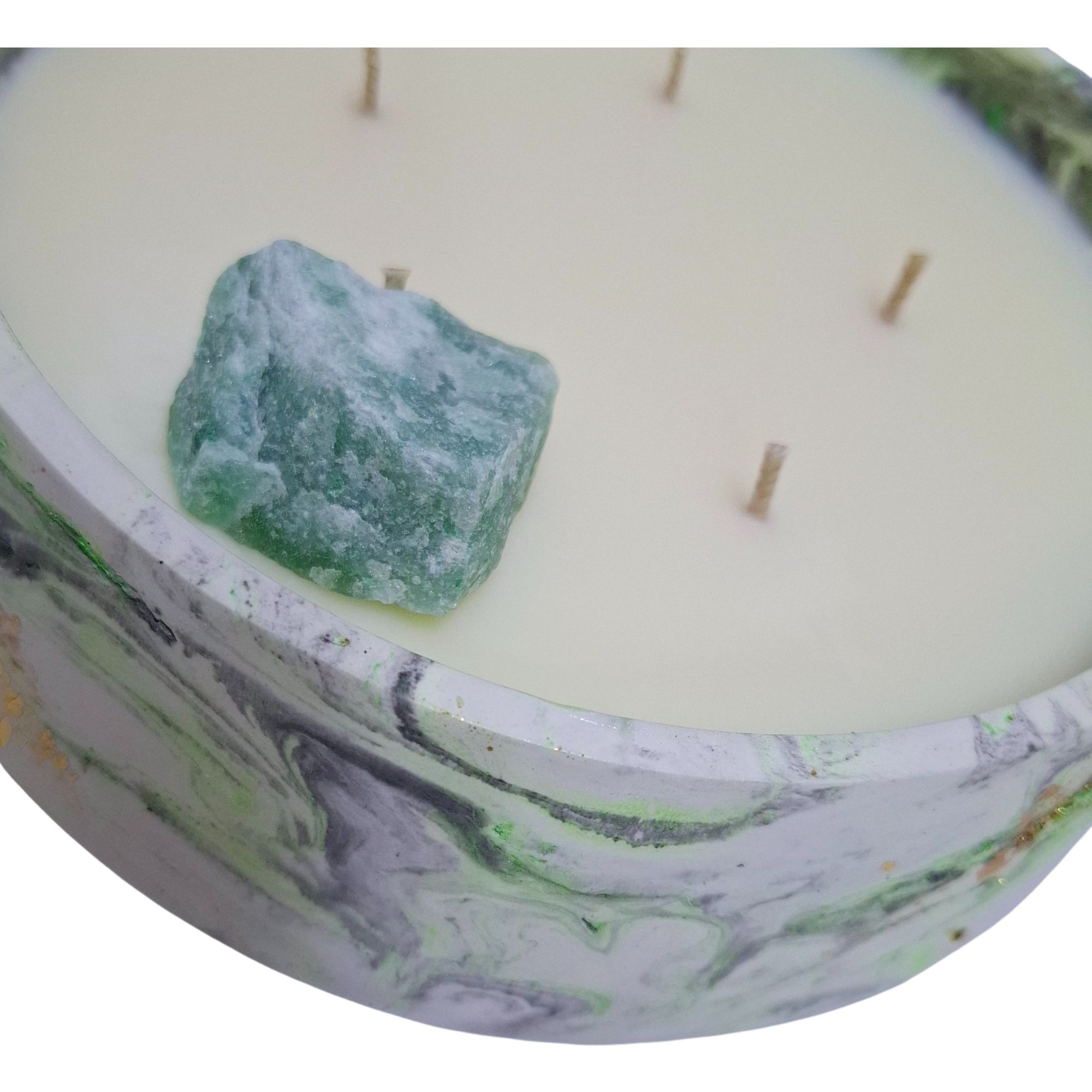 Ši žvakė išlieta rankomis iš natūralaus sojų vaško, unikaliame marmuriniame inde su žalsvais atspalviais ir aukso detalėmis. Kai dega jos liepsna, ji sužadina avantiūrino šviesą – švelnią, bet gyvą energiją, kuri įkvepia keistis ir tikėti savo keliu ????