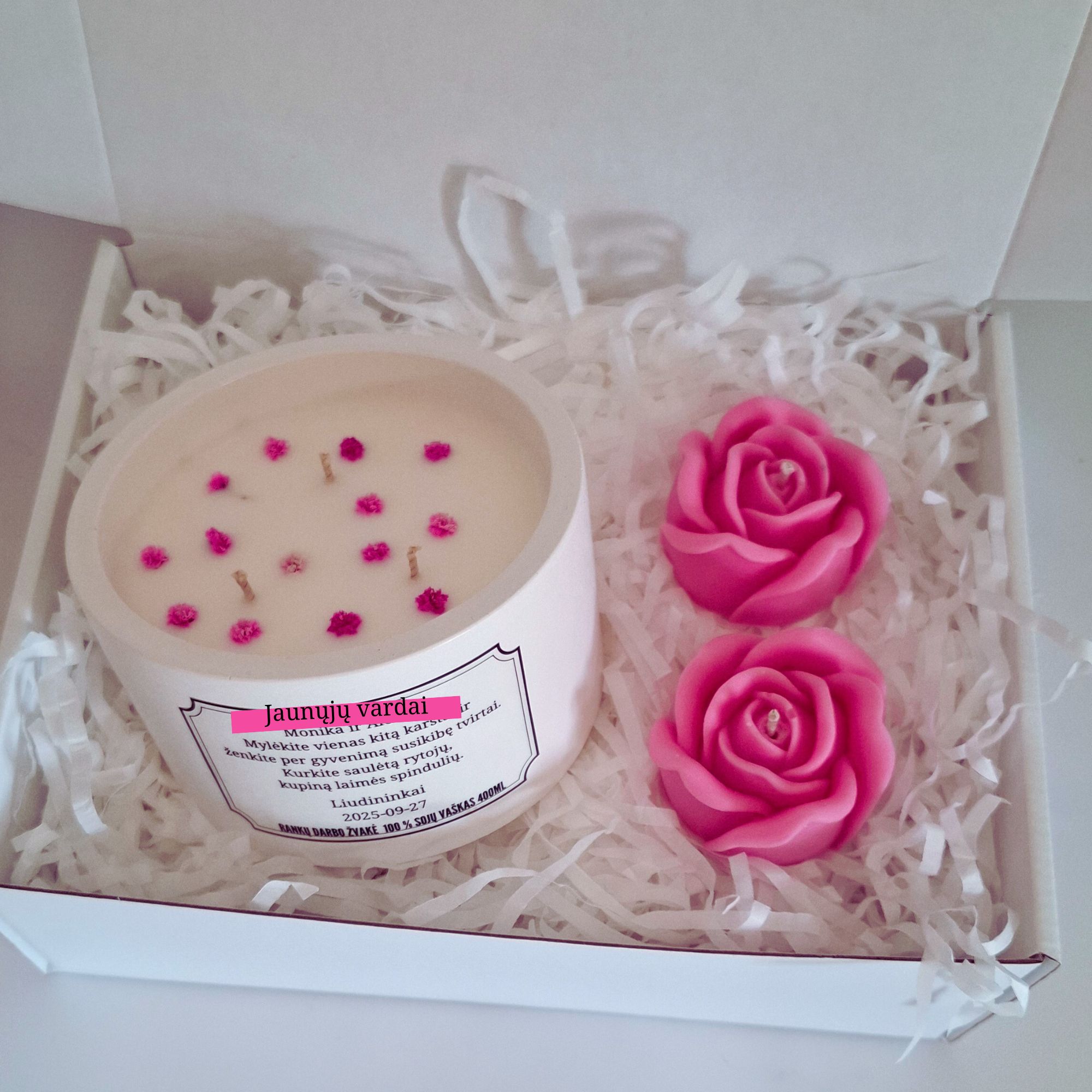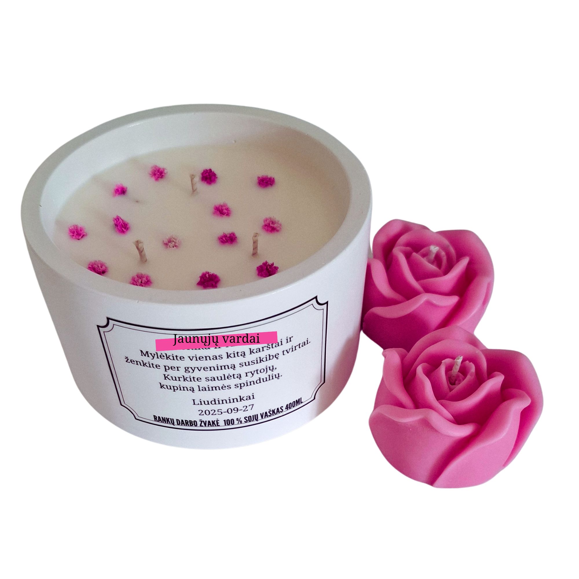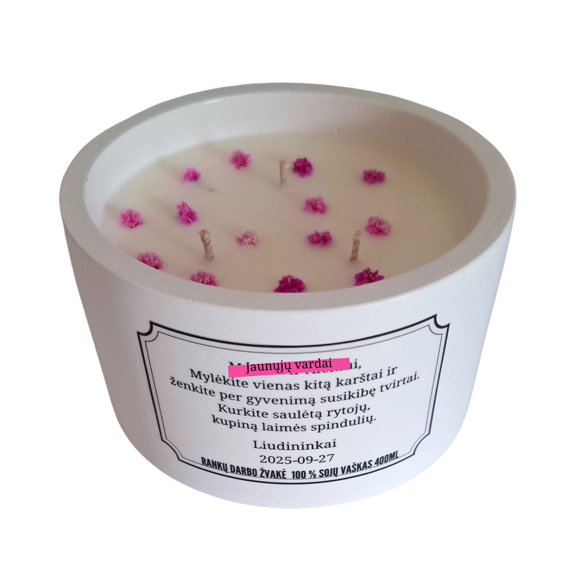 Užrašas ant žvakės indelio individualus