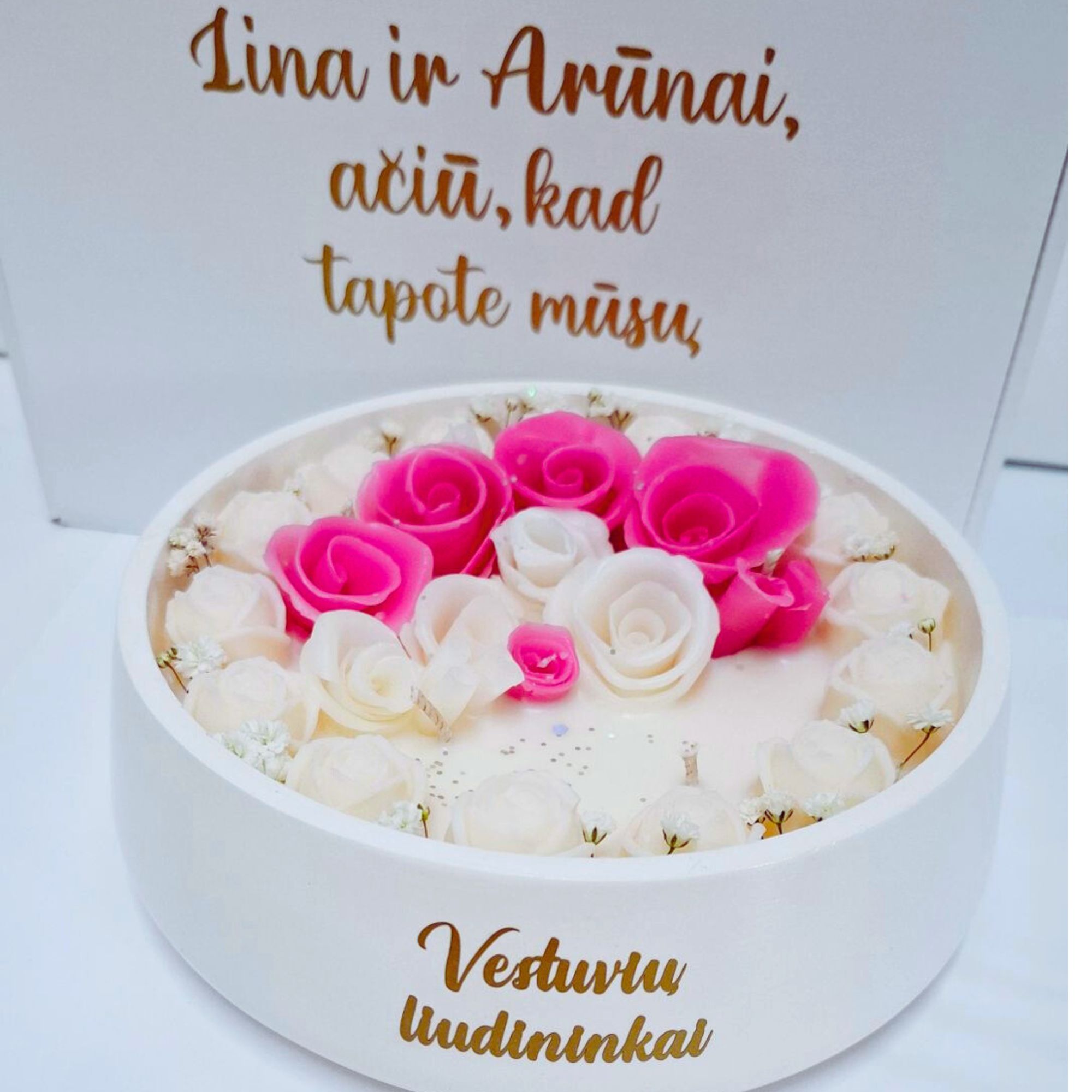 Ant žvakės gali būti jūsų tekstas, palinkėjimas ir t.t.